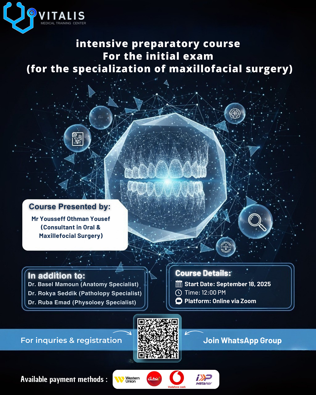 سجل الآنيقدم الكورس: م.يوسف عثمان يوسف استشاري جراحة الوجه والفكين بالإضافة الى : د. باسل مأمون/اختصاصي التشريح د.رقيه صديق/ اختصاصي باثولوجي د.ربا عماد/اختصاصي فيسيولوجي.
